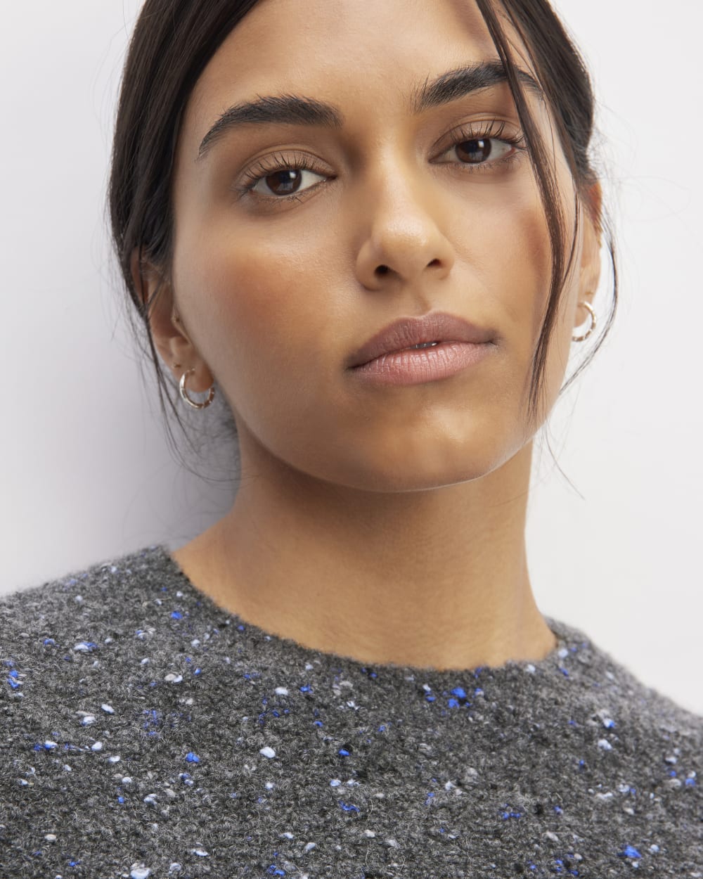 Big on fun. soft to touch. the Confetti Crew celebrates playful style with a sprinkle of colors. Made with a sumptuous merino wool blend in an airy boucle texture. this cozy staple features an oversized silhouette with wide sleeves and ribbed hems. Pair with our Way-High Drape Pant for a relaxed. yet polished. look.