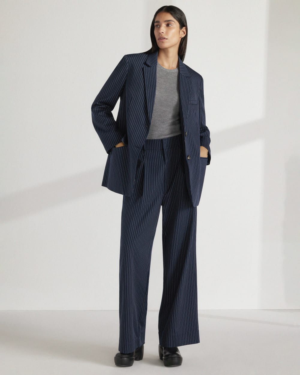 The Long-Sleeve Sweater Tee in Ultrasoft Merino | Heather Mid Grey